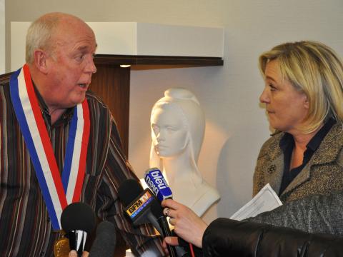 Marine Le Pen est venue elle-même chercher sa signature auprès du maire de Fort-Louis, Gérard Janus. (Photo : ©Thomas Richard / Cuej)